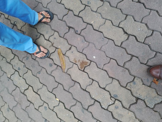 Vết máu còn lại ở khu vực xảy ra sự việc.